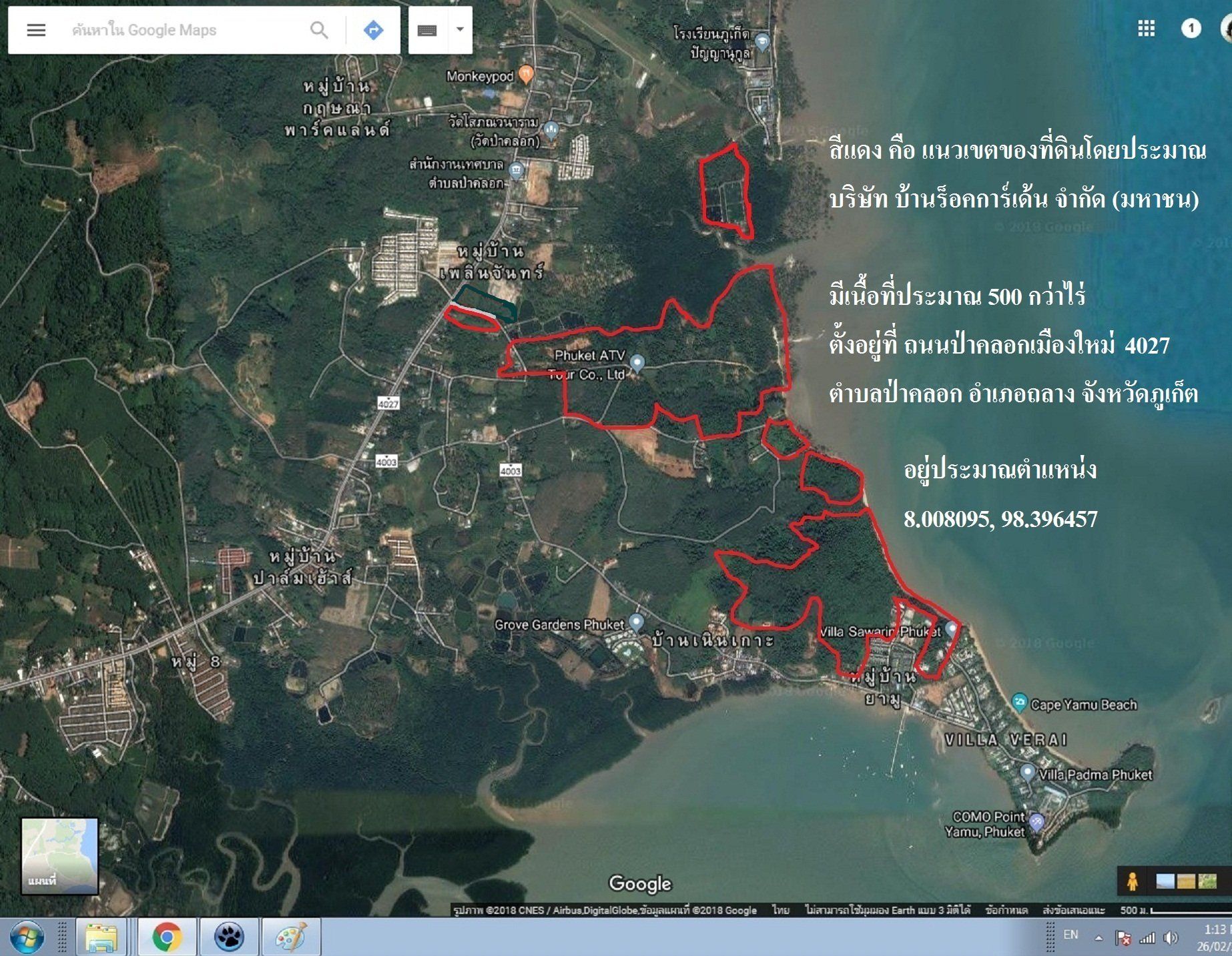 บริษัทฯ ได้โอนขายหุ้นบริษัท ยามู พร็อพเพอร์ตี้ ดีเวลลอปเม้นท์ จำกัด ให้กับ นางเนาวนารถ จามรมาน เนื่องจากกิจการยังไม่มีความเคลื่อนไหว และมีค่าใช้จ่ายประจำสูงเกินความจำเป็น อย่างไรก็ตามบริษัท ยามู พร็อพเพอร์ตี้ ดีเวลลอปเม้นท์ จำกัด ยังคงเป็นบริษัทร่วมทุนแต่ไม่ได้ดำเนินการกิจกรรมใดๆ โดยเป็นการลงทุนร่วมกับกลุ่มนักลงทุนชาวสวีเดนและกลุ่มนักลงทุนคนไทย ในสัดส่วน 50 : 50 มีกรรมการทั้งหมด 4 ท่านประกอบด้วย นายวิรัตน์ ชินประพินพร นางเนาวนิจ ศิลปรัตน์ และ 2 ท่านจากกลุ่มนักลงทุนชาวสวีเดน โดยกรรมการผู้มีอำนาจลงนามผูกพันคือ นายวิรัตน์ ชินประพินพร หรือ นางเนาวนิจ ศิลปรัตน์ ลงนามร่วมกับกรรมการจากกลุ่มนักลงทุนชาวสวีเดนท่านใดท่านหนึ่ง ซึ่งในขณะนี้ทางบริษัทสามารถเปิดรับการเข้าร่วมลงทุนของนักลงทุนทั้งชาวไทยและชาวต่างชาติ หากนักลงทุนสนใจลงทุนในที่ดินบนเนื้อที่กว่า 500ไร่ ที่อำเภอถลาง จังหวัดภูเก็ต